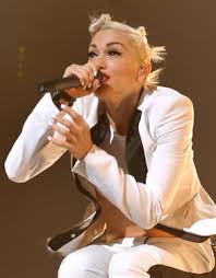 Gwen's killer black stripe menswear suit with white nails: